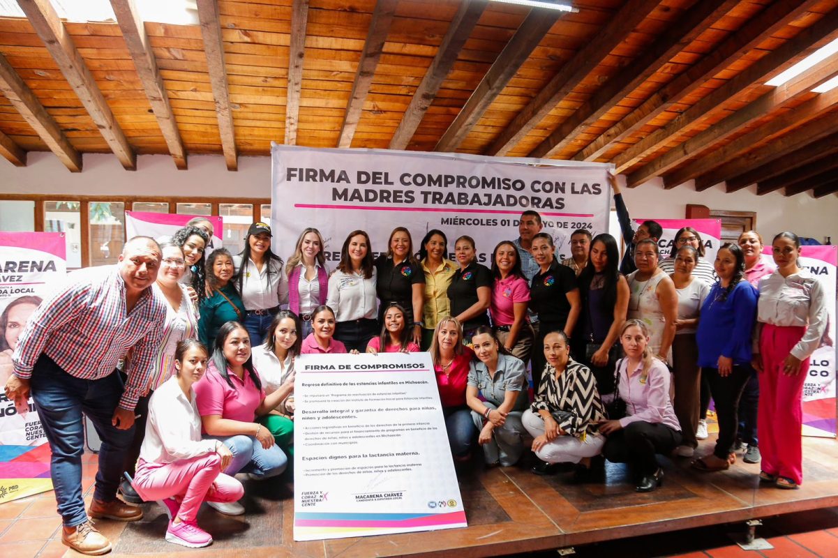 Pátzcuaro, Mich., a 1 de Mayo de 2024_.n un día histórico para las y los trabajadores y con la finalidad de reconocer el esfuerzo que los y las michoacanas realizan para salir adelante, Macarena Chávez Flores, Candidata a Diputada Local por el Distrito 15 de Pátzcuaro, encabezó la Firma Compromiso con las Madres Trabajadoras, que buscará el regreso definitivo de las Estancias Infantiles en Michoacán.