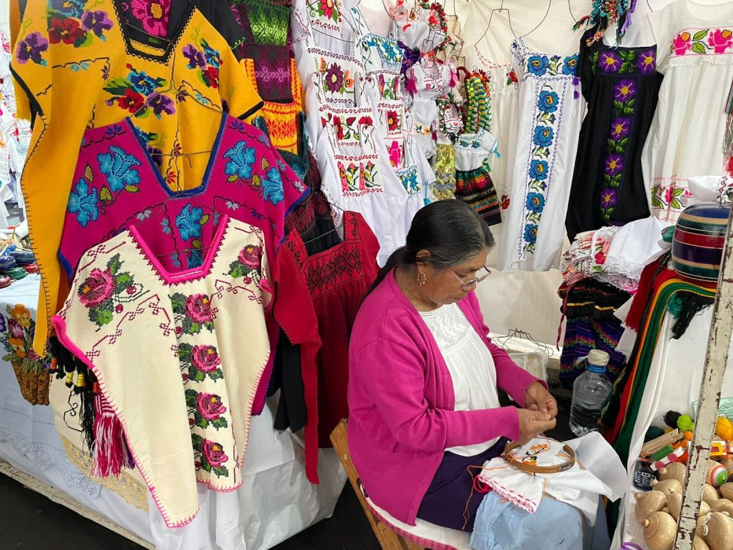 La artesana Juana Ninis Ceja, de la localidad de Cherán, mencionó que sus textiles son un hermoso regalo para dar en esta época del año, ya que son prendas únicas con muchas horas de trabajo y diseños tradicionales, que están a precios accesibles para todo el público.