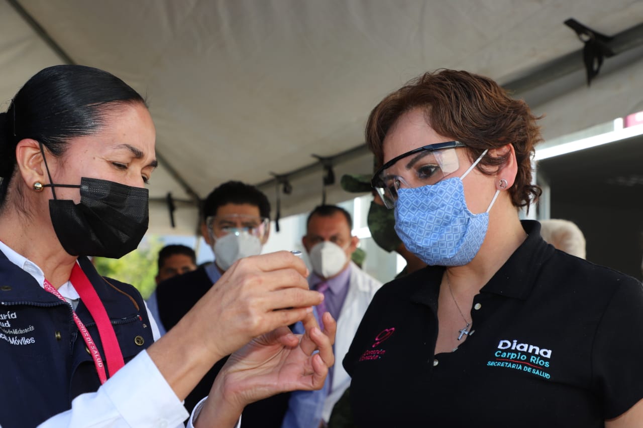 Morelia, Mich, a 16 de febrero de 2021.- Con el objetivo de garantizar la inmunización de las y los adultos mayores de 60 años contra COVID-19, la titular de la Secretaría de Salud de Michoacán (SSM), Diana Carpio Ríos, verificó la operatividad de los puestos de vacunación en Tierra Caliente.