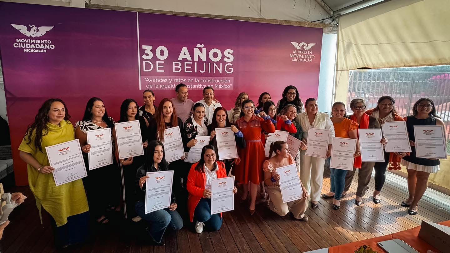 Morelia, Mich., a 8 de Diciembre del 2025.- Al conmemorar en Morelia los 30 años de la Plataforma de Acción de Beijing, el llamado es seguir trabajando desde todas las trincheras para fortalecer la agenda de género y a no detener la lucha por los derechos de las mujeres,subrayó el coordinador estatal de Movimiento Ciudadano, Víctor Manuel Manríquez González, tras celebrar la participación de mujeres lideresas, militantes y especialistas en la agenda de género en Morelia.