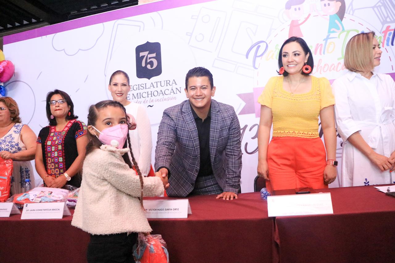 Morelia, Mich., a 12 de Mayo del 2022.- La voz de las niñas y los niños, sus preocupaciones, propuestas e intereses, es vital para la construcción de políticas públicas de atención a la infancia, recalcó el diputado Víctor Zurita Ortiz, integrante de la Comisión de Derechos Humanos de la LXXV Legislatura del Congreso del Estado.El legislador del Grupo Parlamentario de Morena celebró la realización del Parlamento Infantil Michoacán 2022, con carácter inclusivo, al contar con la participación de legisladores infantiles con capacidades diferentes.“Sin duda es fundamental la construcción y permanencia de espacios que, como el Parlamento Infantil, permitan que la voz de nuestra infancia se exprese, para que a partir de sus opiniones, posicionamientos y propuestas el Congreso del Estado camine legislativamente para que éstas encuentren reflejo en nuestras normas”.Destacó que el Parlamento Infantil es un espacio que cimienta en nuestras niñas y niños el espíritu de la participación ciudadana en la tarea pública, fortaleciendo así la cultura de la participación desde edades tempranas.“Los planteamientos de las niñas y niños sin duda son una fuerte sacudida para quienes tenemos una representación pública, pues evidencian los grandes pendientes que se tienen para con nuestra infancia, pese a que el interés superior en su cuidado está tutelado en nuestra máxima norma”.Víctor Zurita apuntó que la experiencia de este Parlamento Infantil inclusivo, permite a las y los diputados insumos para la generación de propuestas que permitan fortalecer nuestra legislación en temas que son motivo de preocupación para niñas y niños.“Debemos estar atentos a las propuestas y asumir un compromiso profundo y franco a que esas inquietudes, exigencias, preocupaciones y propuestas, encuentren el cauce necesario para su reflejo en nuestras leyes, y en la generación de políticas públicas”, recalcó.