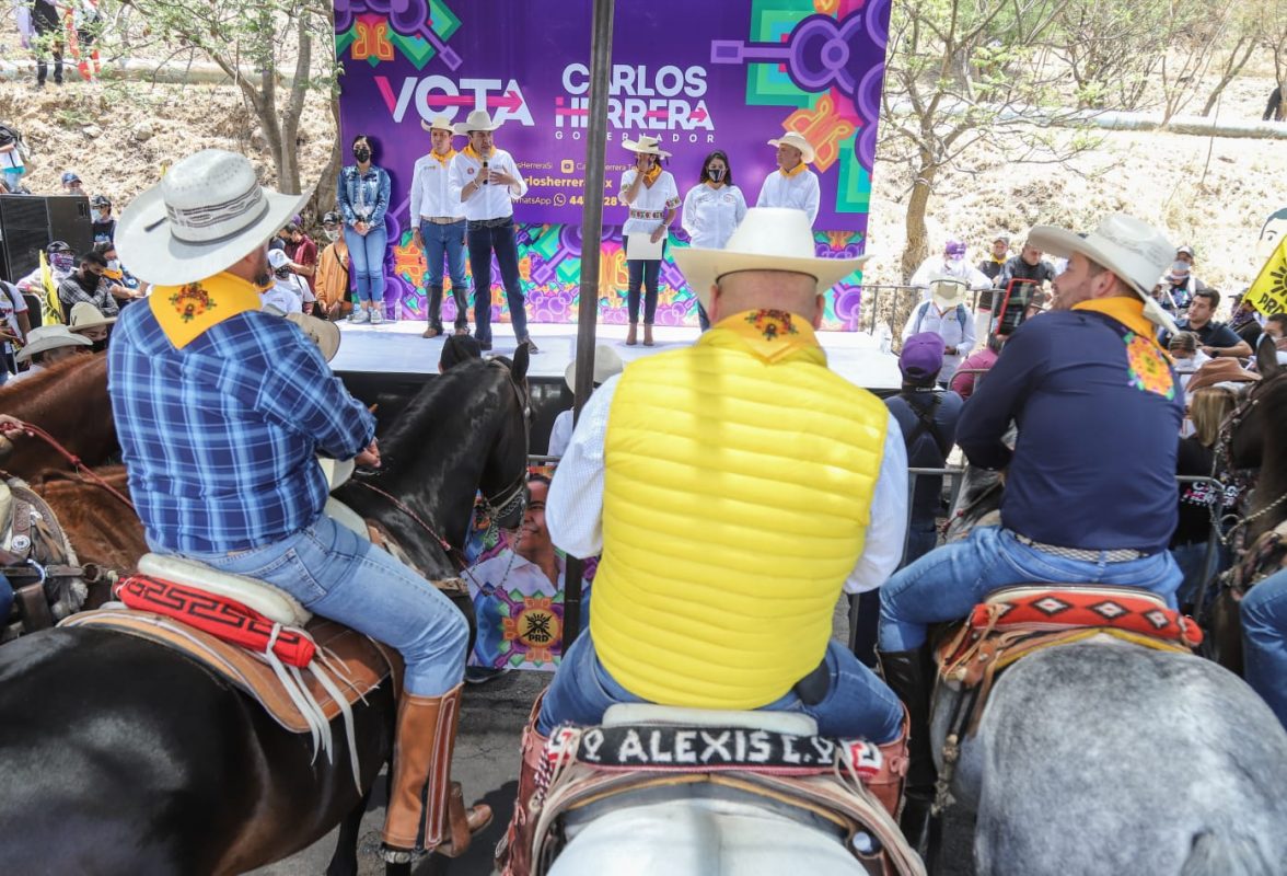 Acompañaron en la cabalgata al candidato Carlos Herrera, el coordinador regional de campaña, Antonio García Conejo; el presidente de la Asociación de Caballos Bailadores del Estado de Michoacán, Salvador Lombera Silva, así como lideres partidistas y representantes de diversos sectores sociales.